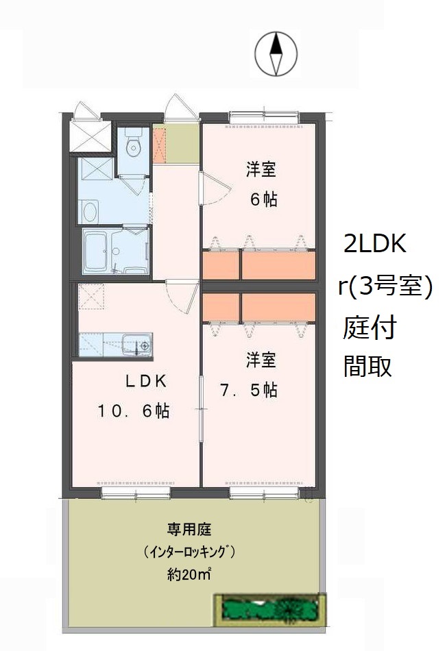 Jフローレンス間取r3号室庭付
